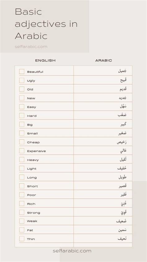 arabic adjectives list pdf
