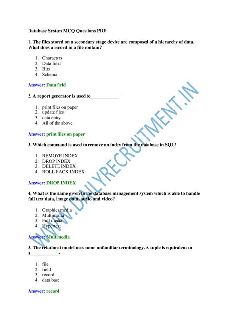 database management system mcq questions with answers pdf class 10