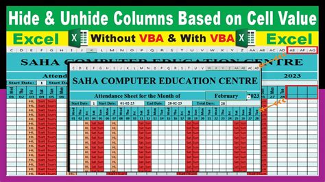 excel vba hide and unhide columns based on cell value