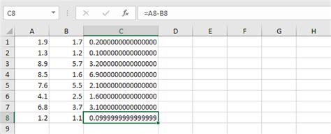 floating point rounding error excel