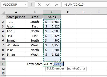 formula to sum up a column in excel
