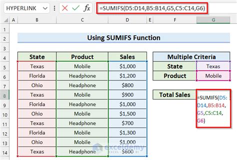 how sumifs formula works in excel