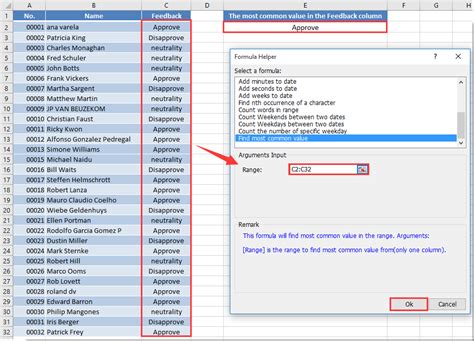 how to find most common word in excel column