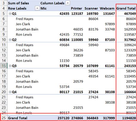 how to include total in pivot table