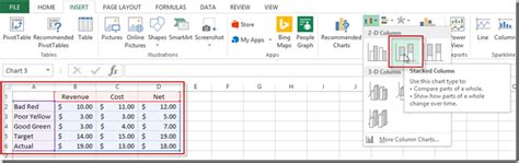 how to insert a table in excel with different column widths