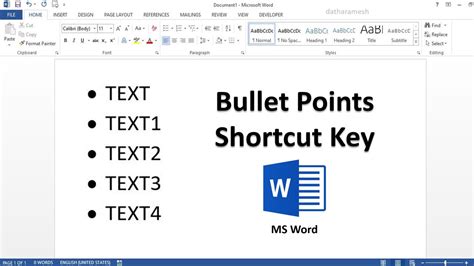 how to insert bullet points in word shortcut key