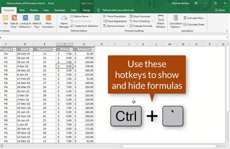 how to see the formula in excel shortcut