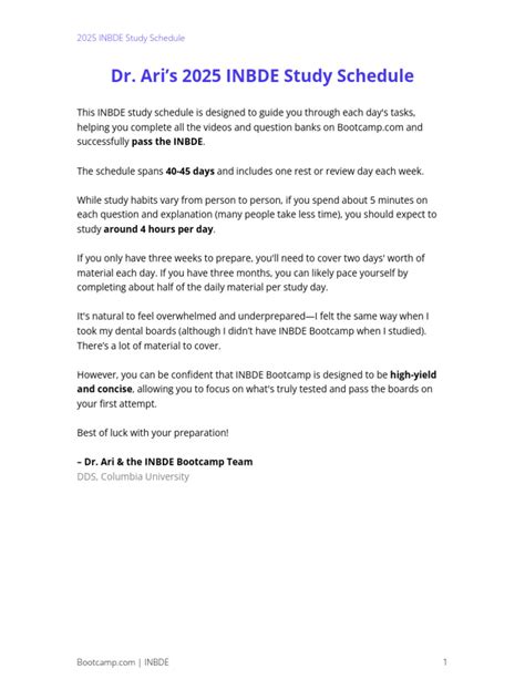 inbde study schedule pdf