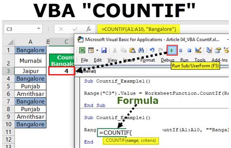 insert countif formula in excel vba