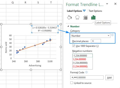 insert trend line equation in excel