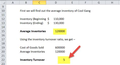 inventory turnover formula in excel