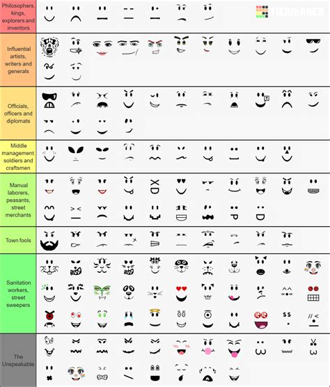 roblox face tier list