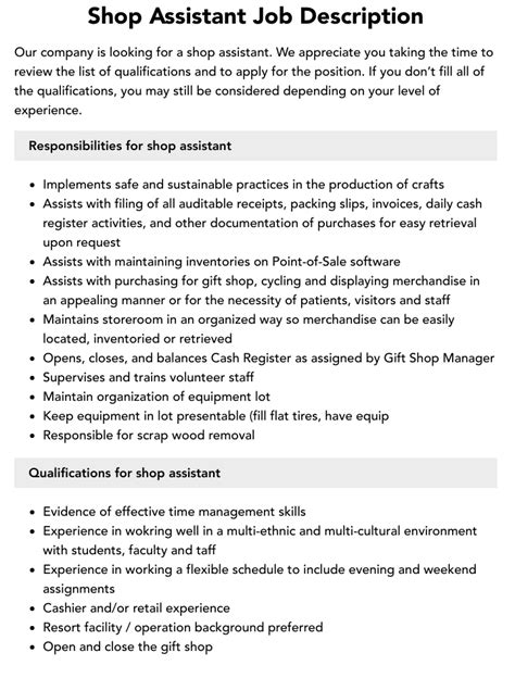 shop assistant job description examples