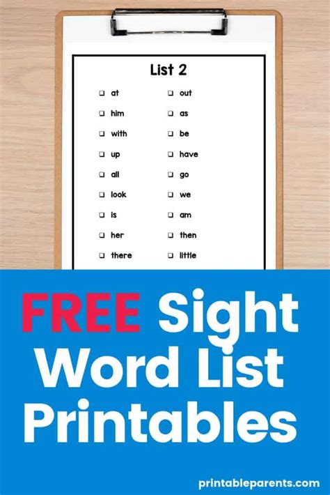 sight word list pdf