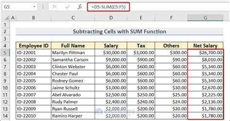 sum formula in excel for subtraction