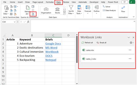 view links to other workbooks in excel
