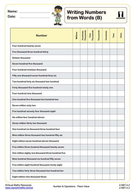 write numbers in words worksheet with answers